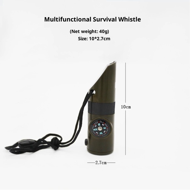 Seven functions whistle, ABS high-strength anti-fall high temperature engineering materials, built-in whistle, flashlight, magnifier, sealed compartment, thermometer, mirror, compass, seven functions, small size, easy to carry!